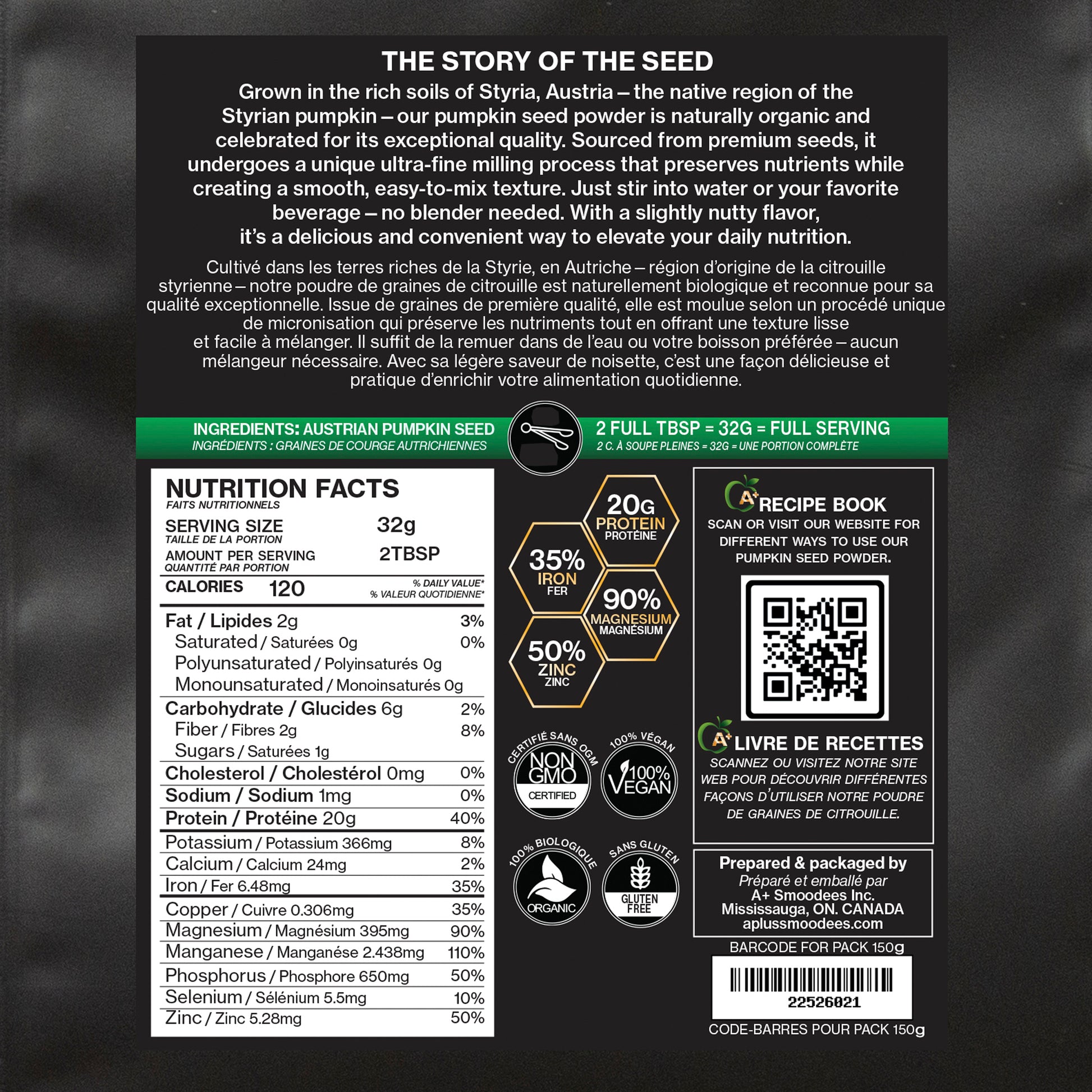 Ingredient & Process: Styrian pumpkins plucked right from their beautiful patch.The process involves a traditional extraction method where seeds are soaked in a salt bath, drawing the oil to the surface. After pressing, the oil is milled using a unique process that ensures it dissolves in water - no BLENDING needed!!.
